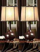 2K Furniture Designs L1722 Review: Set of 2 Dark Red & Fabric Shade Table Lamps. These were exactly what I was looking for. They are not in any way small and cheesy, nor are they oversized and gaudy. They accomodate a 3-way bulb, and fit in with my decor nicely.8 of 9 . Read more »