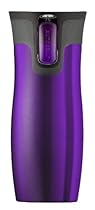 Contigo WLF100A01 Review: Contigo AUTOSEAL Stainless Steel Vacuum Insulated Tumbler, 16 Ounces, Purple. My husband called my old car "the cheesemobile," because I often spilled my white chocolate whole-milk lattes between the seats while driving and couldn't clean up the mess before it soured and stank. Hot summers in that car were not fun.My new car is the same color as this beautiful insulated mug, and the car smells fine because the mug works so well. Screw on the lid and your drink is secure - hot or cold. Simply press the button and drink. When you release the button and put the ... Read more »